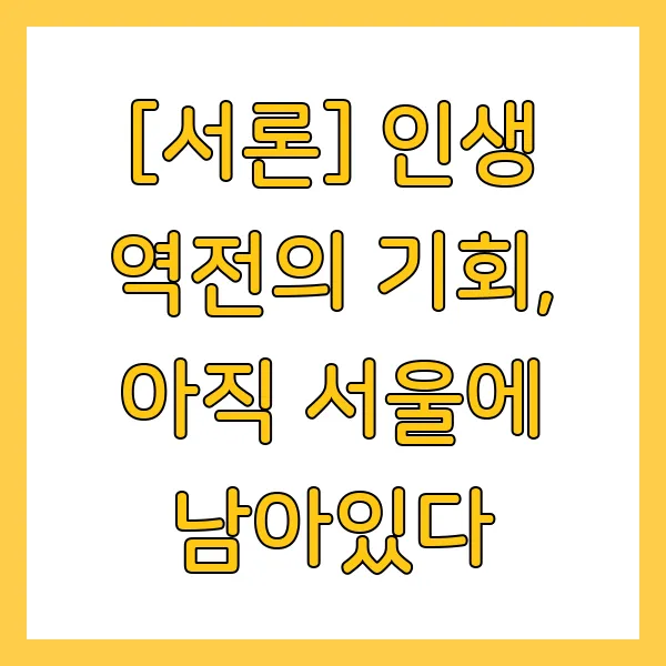 [서론] 인생 역전의 기회, 아직 서울에 남아있다
