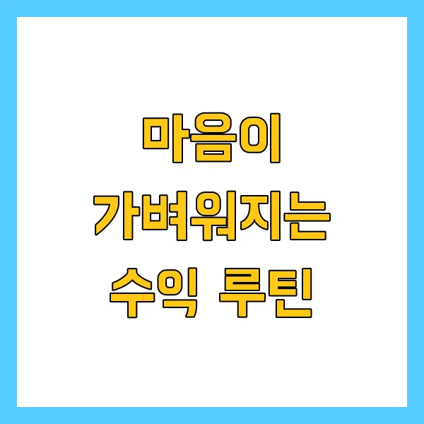 오늘은 여러분의 지친 마음에 활력을 불어넣고, 통장에는 여유를 더해 줄 '마음이 가벼워지는 수익 루틴' 4가지 를 소개합니다. 퇴근 후, 주말의 자투리 시간을 활용해 스트레스 없이 나만의 수익 파이프라인을 만들어 보세요.