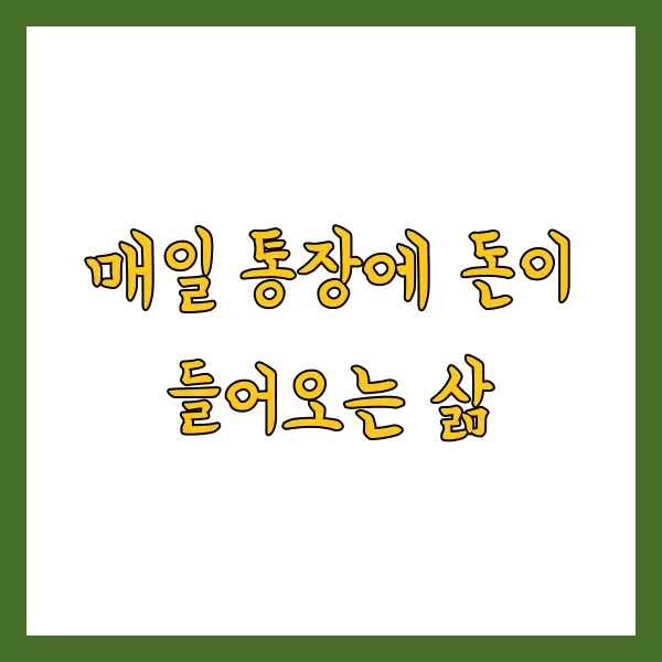 매일 아침 눈을 떴을 때, 밤사이 내 통장에 소소한 이자가, 혹은 월급 외 수익이 차곡차곡 쌓여 있다면 어떨까요? '매일 통장에 돈이 들어오는 삶'은 더 이상 일부 부자들만의 이야기가 아닙니다. 거창한 사업이나 로또 당첨이 아니더라도, 누구나 단단한 '시스템' 을 통해 자동 수익의 파이프라인을 만들 수 있습니다.