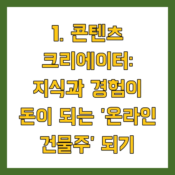 1. 콘텐츠 크리에이터: 지식과 경험이 돈이 되는 '온라인 건물주' 되기